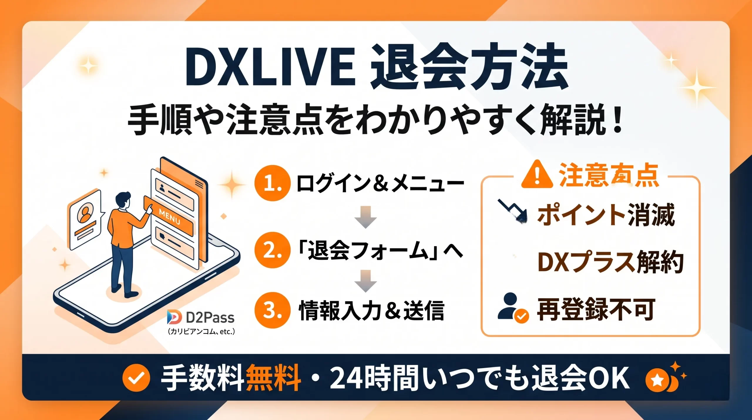 3サイトとも退会手続きは簡単で、24時間いつでも可能です。前払い制のため、退会後に追加料金が発生することはありません。ただし残りポイント/コインは退会時に失効するのが共通の注意点。退会前にポイント残高を確認し、使い切ってから手続きすることをおすすめします。
