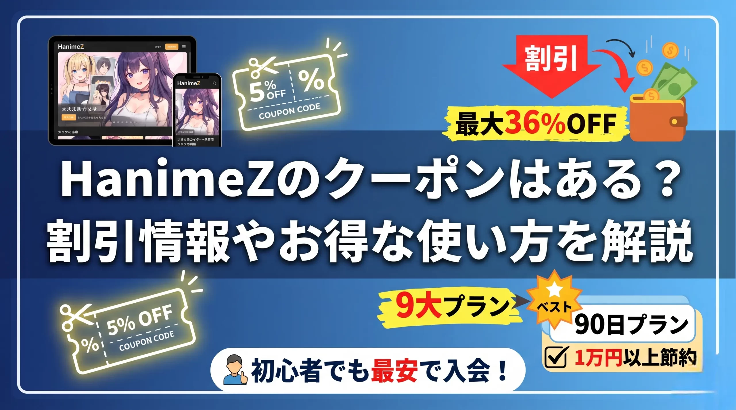 HanimeZには入会時に使える5%割引クーポンがあります。提携レビューサイトなどから入手できるもので、入会フォームのクーポンコード入力欄にコードを入れるだけで適用されます。