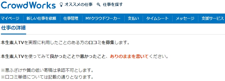 本生素人TVの口コミをクラウドワークスにて募集したところ次のような口コミが集まりました。
