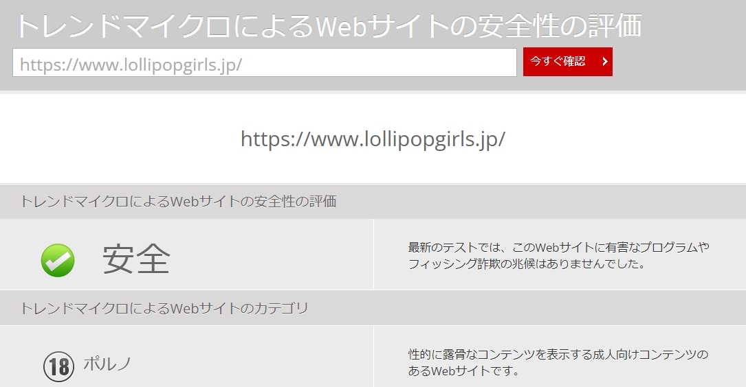 - トレンドマイクロ社によるサイトチェックも問題なし。